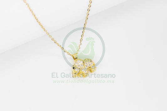 Collar 3H MD09 | Esmaltada Agua + Corazón Tortuga