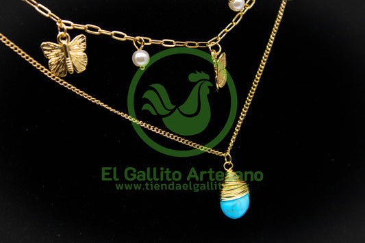 Collar 3H MD14 | Mariposas + Cuarzo Azul
