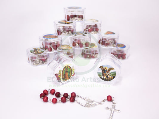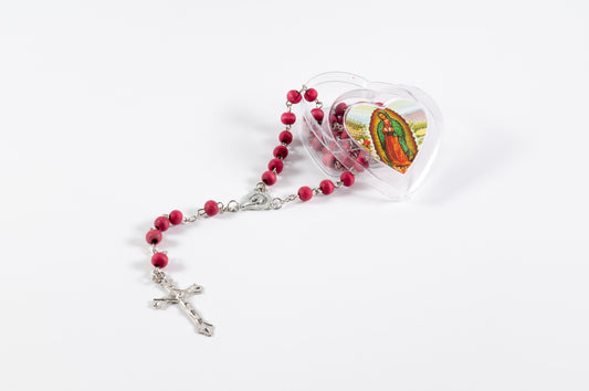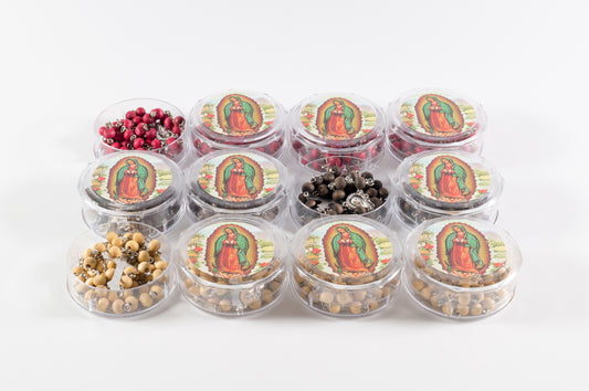 Rosario Madera En Caja Circular Virgen Guadalupe