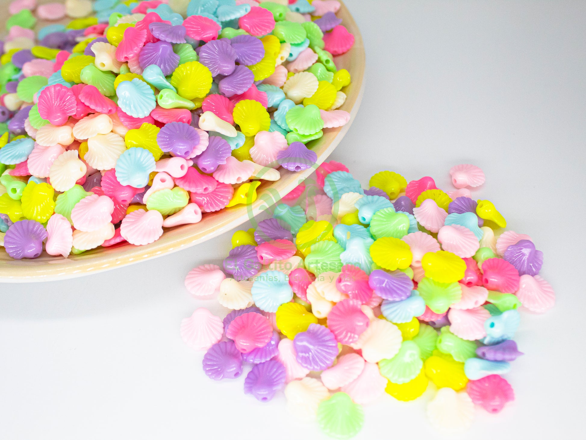 Concha de mar separador en colores multi tipo pastel, perfecto complemento para tu kit de armado de bisutería, perfecto componente tipo dije o separador de bisutería que brinda un toque de casual, informal y deportivo a tus accesorios.