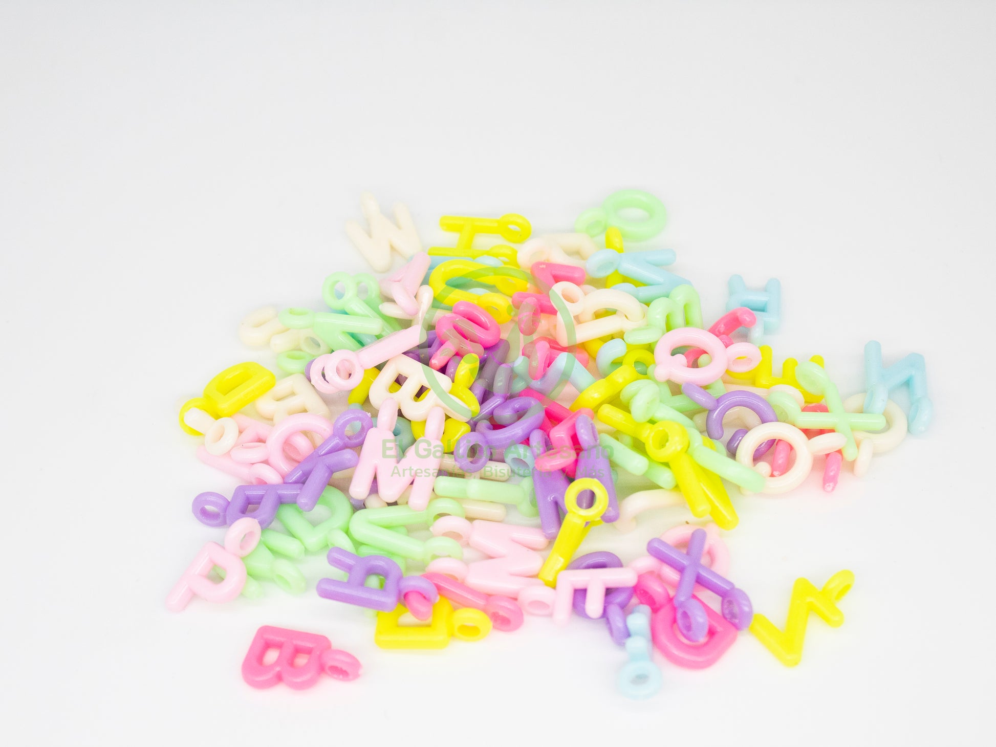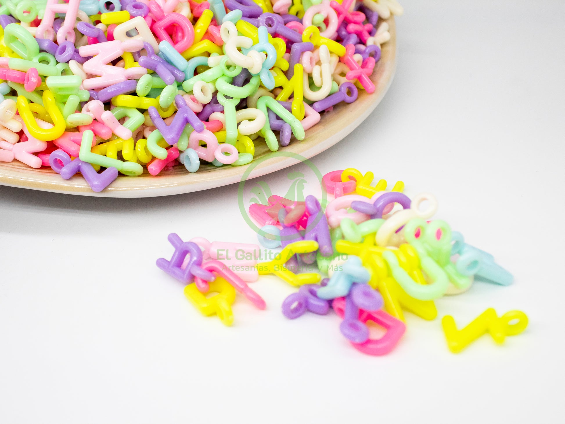 Cuentas básicas letras infaltables en tu kit, elaboradas de acrílico para ensamblado de accesorios de moda de bisutería/fantasía/joyería. Con orificio en tipo dije o armella también de acrílico para ensartar hilo, cordón, listón, etc.
