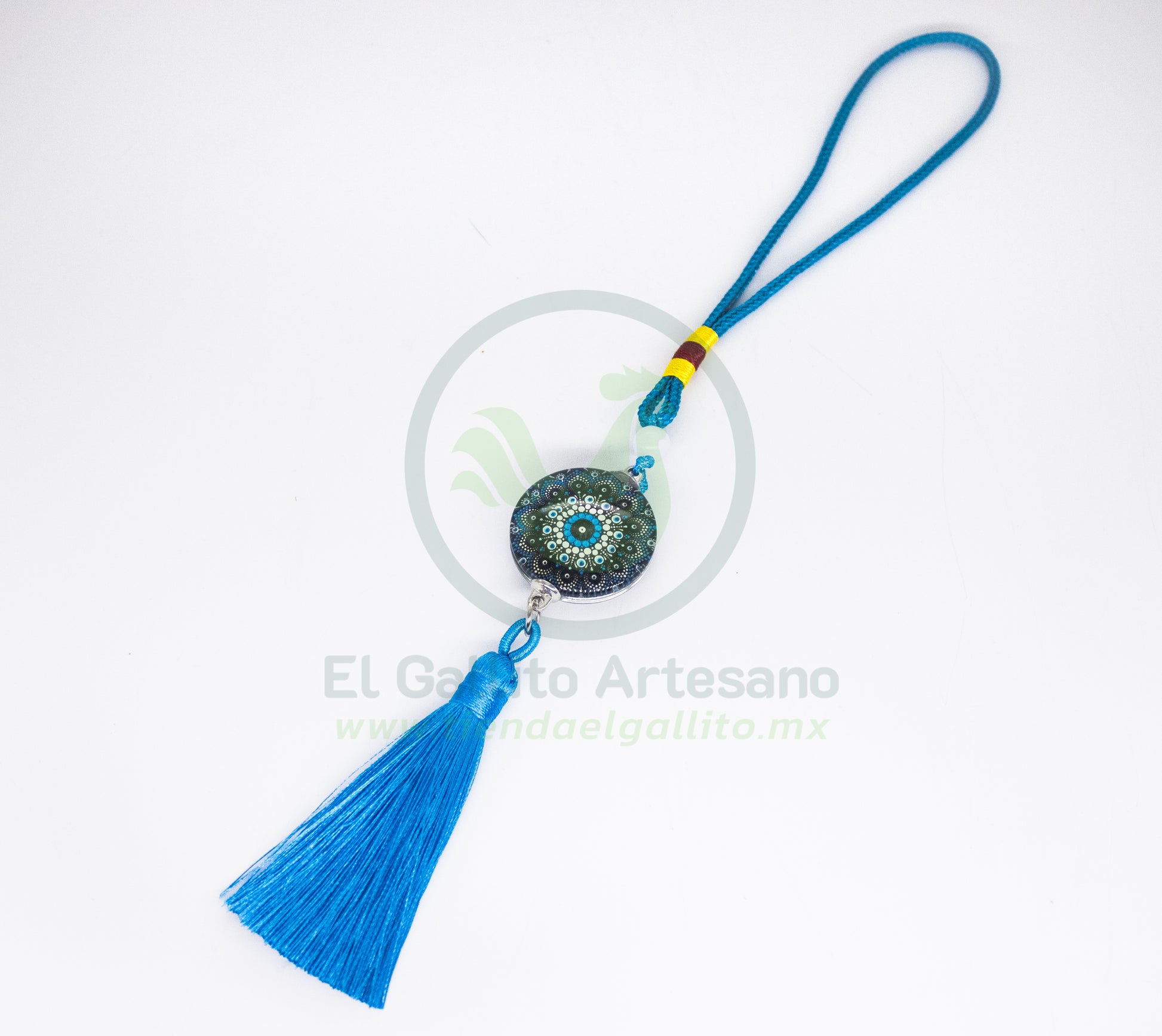 Colgante con Ojo Turco cristalizado, ganchito extra y mechudo de color turquesa finito.
