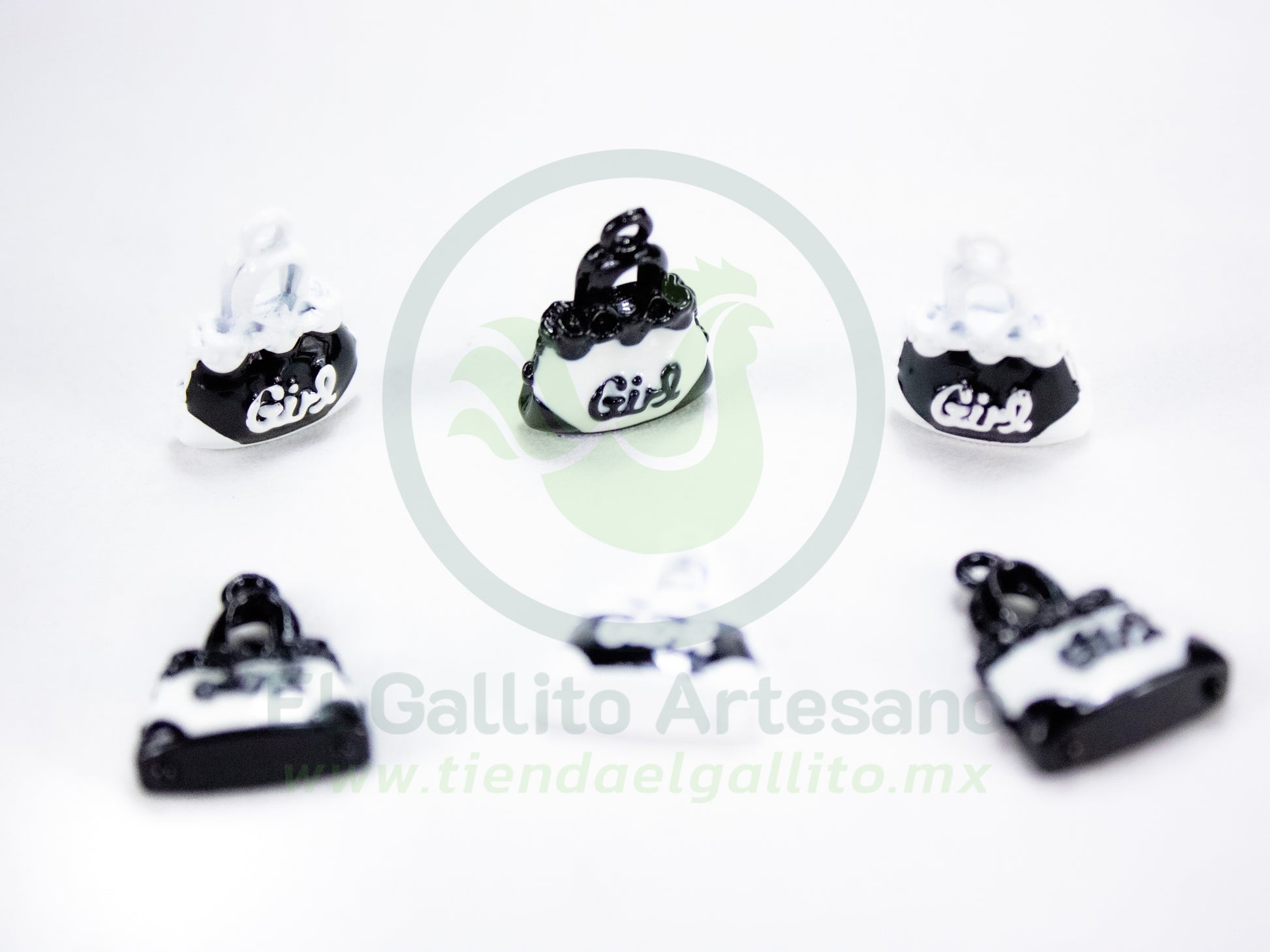 Paquete con 6pz de colores aleatorios, diseño específicado en el mismo titulo, medidas estándar de dije metálico