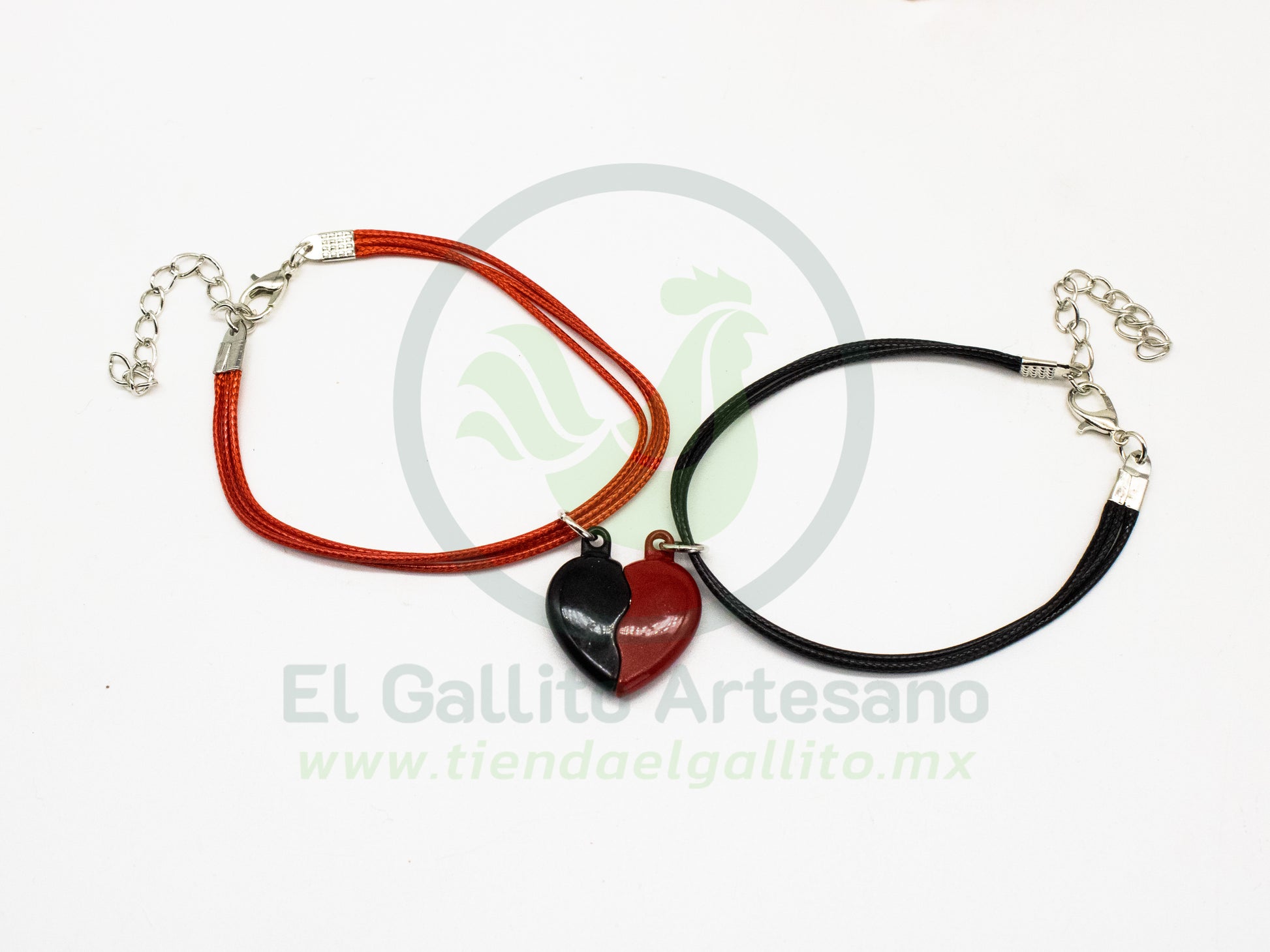 Pulsera HC Dije MD22 | Corazón Partido Negro/Rojo