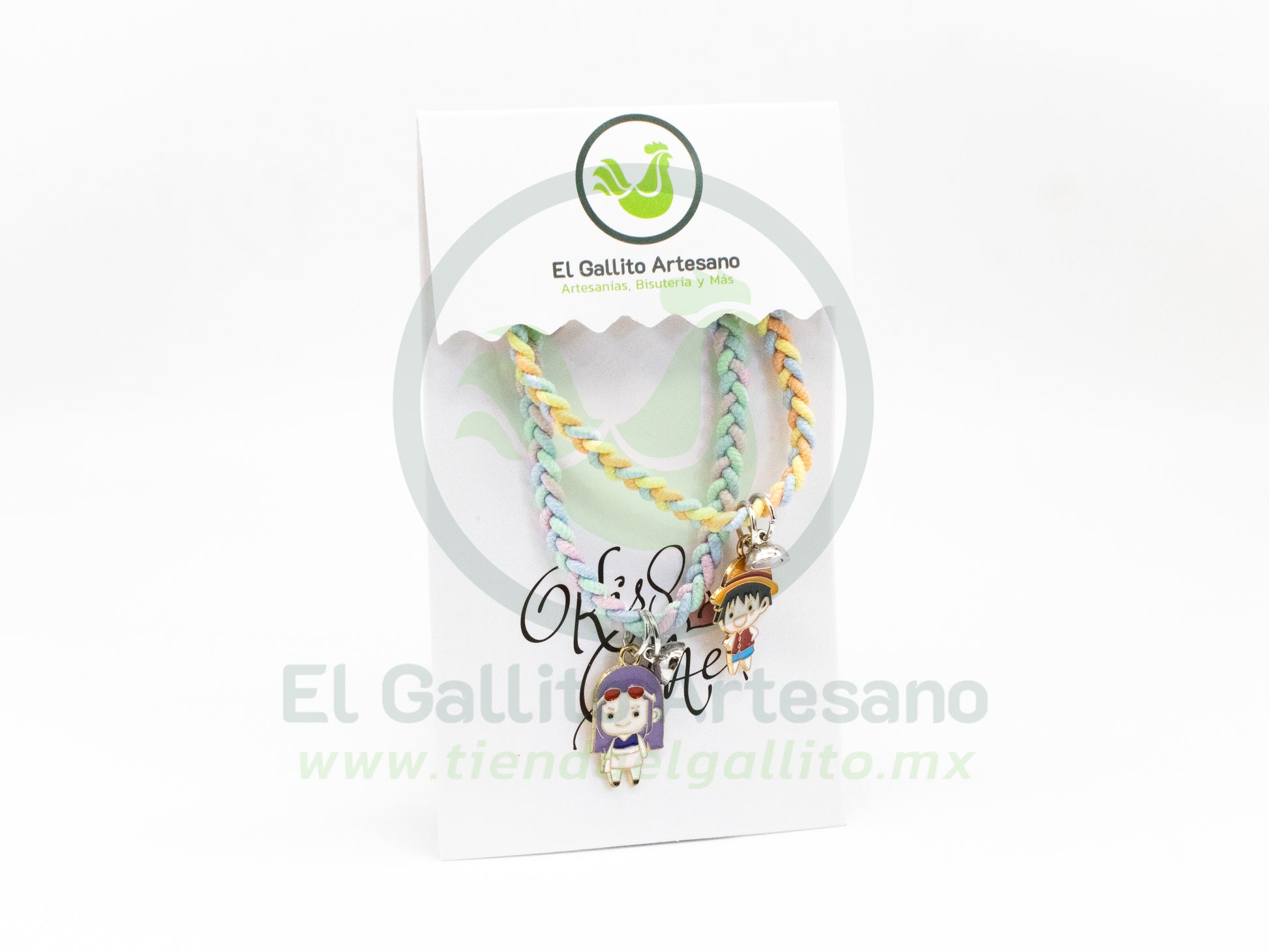 Par de pulseras elaboradas con cordón elástico, ideales para un look tierno y colorido. Cada pulsera incluye un delicado dije de temática,, aportando un toque dulce y personalizado. Su diseño ajustable y cómodo las hace perfectas para usar a diario o como detalle especial entre amigos, familiares o pareja. Un accesorio lleno de encanto y significado.