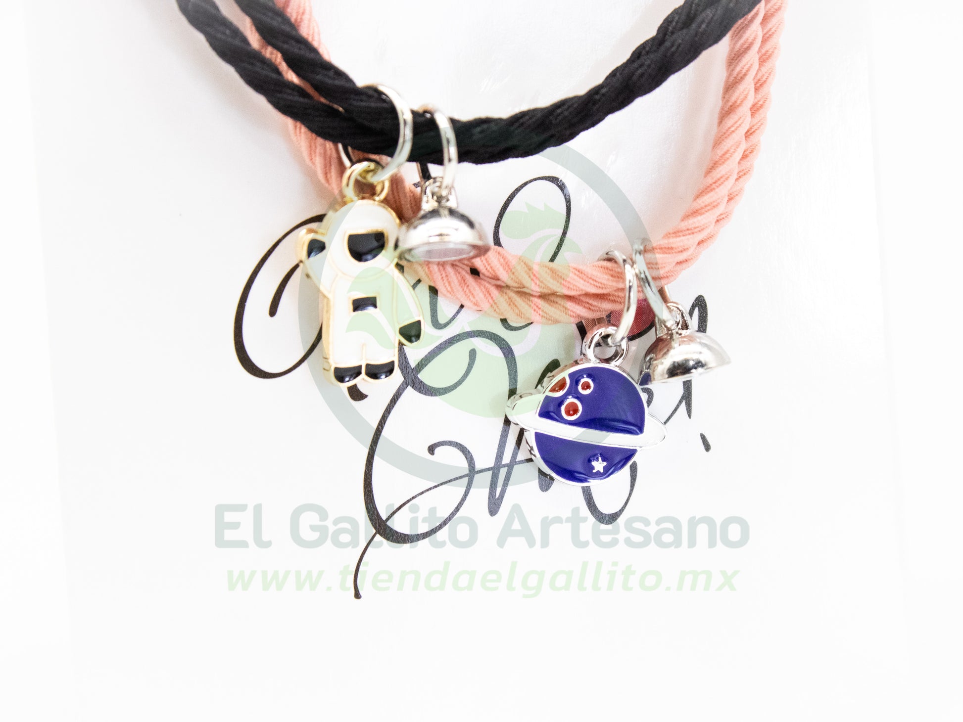 Par de pulseras elaboradas con cordón elástico, ideales para un look tierno y colorido. Cada pulsera incluye un delicado dije de temática,, aportando un toque dulce y personalizado. Su diseño ajustable y cómodo las hace perfectas para usar a diario o como detalle especial entre amigos, familiares o pareja. Un accesorio lleno de encanto y significado.